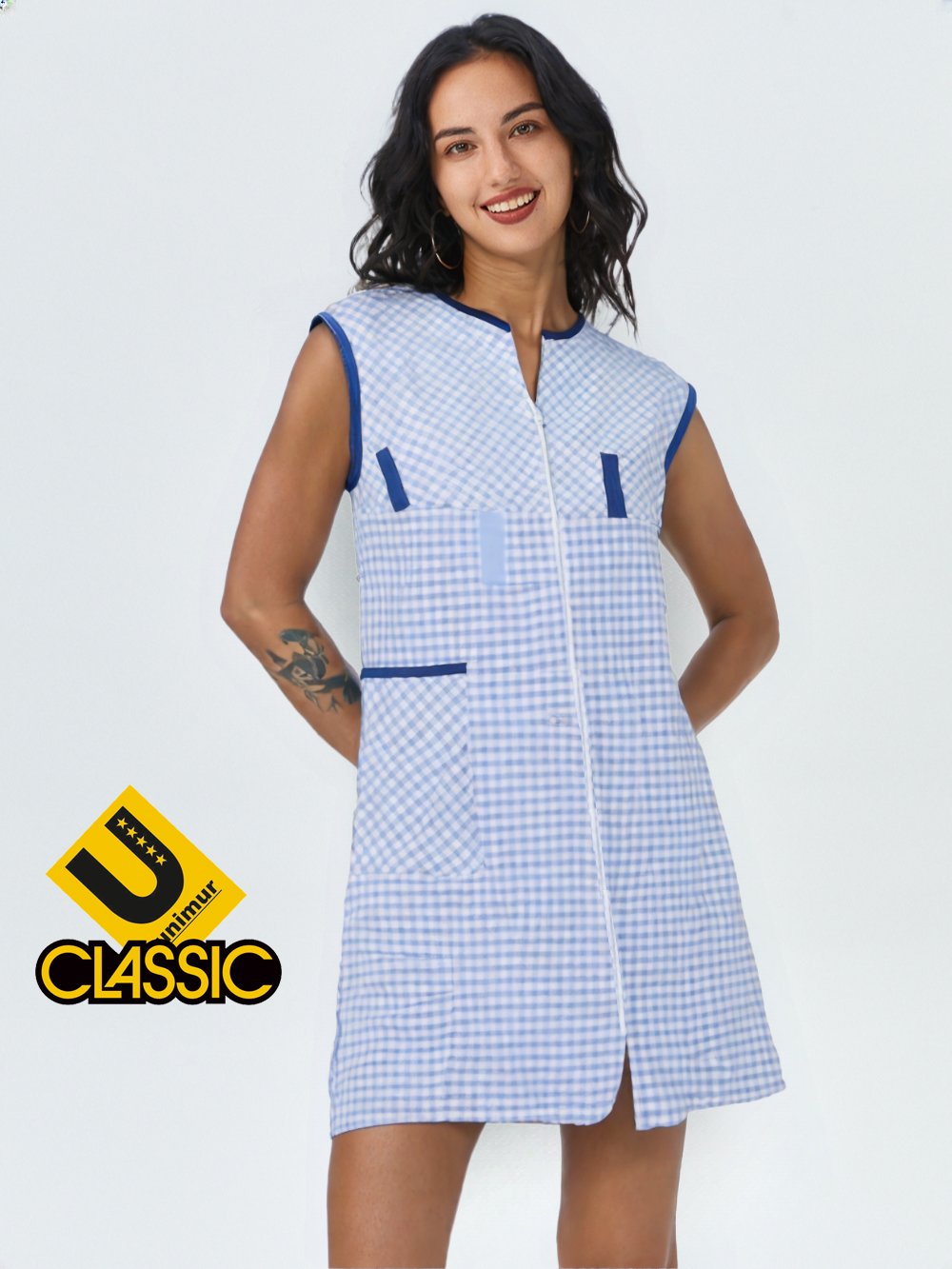 Bata educadora sin mangas con cremallera y amplios bolsillos en la parte delantera con detalle de color a juego