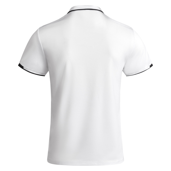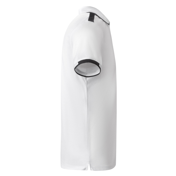 Polo técnico manga corta transpirable bicolor. Antibacteriano. Aperturas laterales. Pieza en hombros y bocamanga a contraste. Cuello y puños rib 1×1 al tono con detalle a contraste. Tapeta con botones a presión, uno visible a contraste de color y otro invisible dentro de la tapeta. Cubrecosturas del mismo tejido a contraste. Certificado GRS.