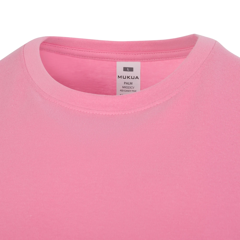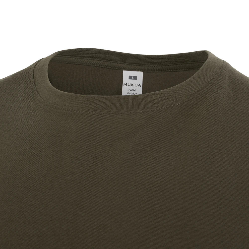 Camiseta UNISEX manga corta. Single Jersey. 100% Algodón RingSpun. 190 g/m². Cuello redondo en punto canalé 1×1 con elastano para mayor elasticidad Cubrecosturas reforzado de hombro a hombro para evitar deformación Tejido tubular Tacto suave Regular fit Tallaje de mujer: PALM WOMAN Tallaje de niños: PALM KIDS
