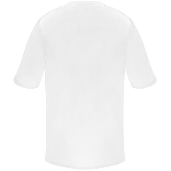 Casaca sanitaria de manga corta unisex.· Cuello de pico.· Dos bolsillos laterales plaqué y uno en el pecho izquierdo.· Aberturas laterales en bajo.· Etiquetado Roly WRK exterior.