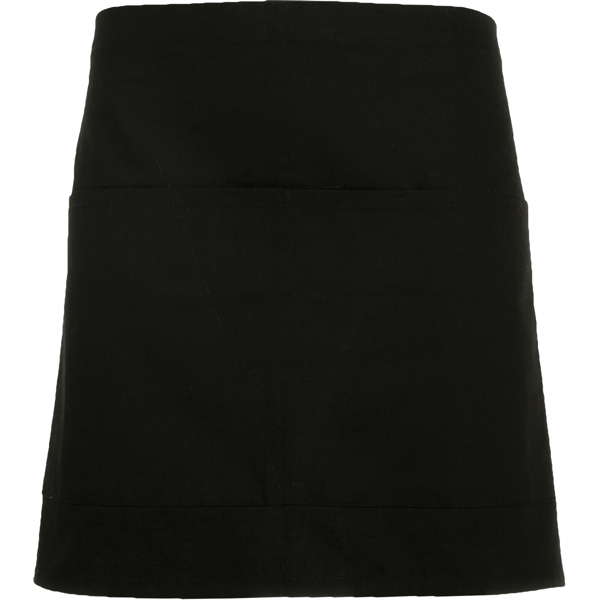 Delantal corto sarga.· Bolsillo frontal con doble costura central que divide el bolsillo en dos.· Cintas del mismo tejido para ajustar en la cintura.