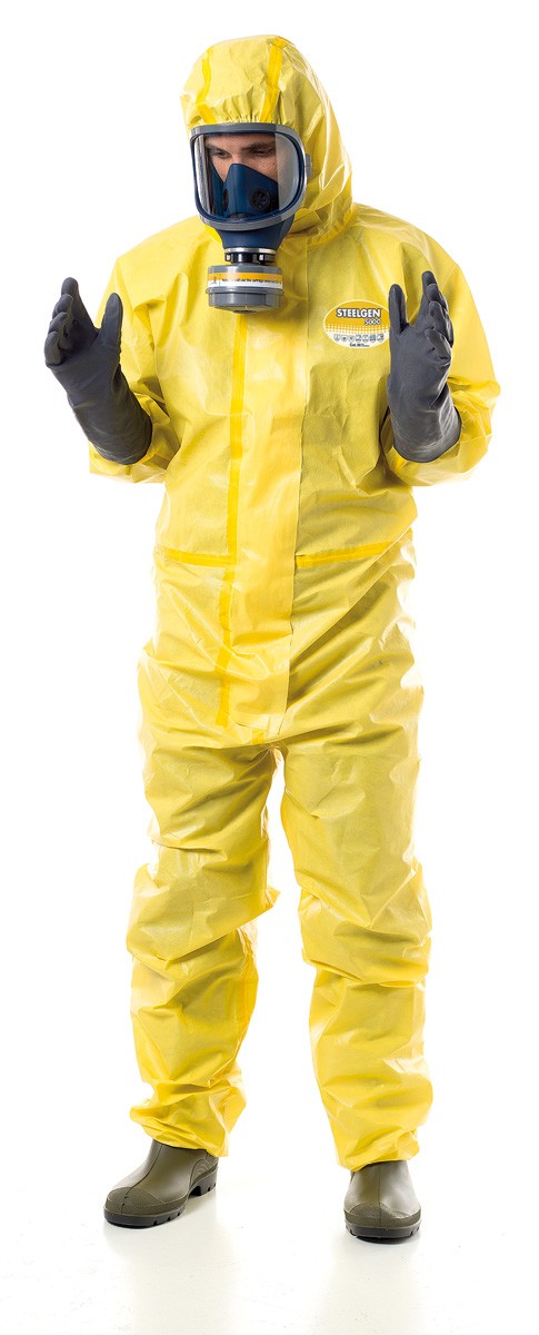 Características Buzo desechable STEELGEN libre de silicona y látex con capucha de tres piezas, cierre frontal de cremallera con tapeta adhesiva. Ajuste elástico en capucha y cintura, puños y tobillos. Costuras termo- selladas. Sujeta-dedos en mangas y cubre-barbilla.