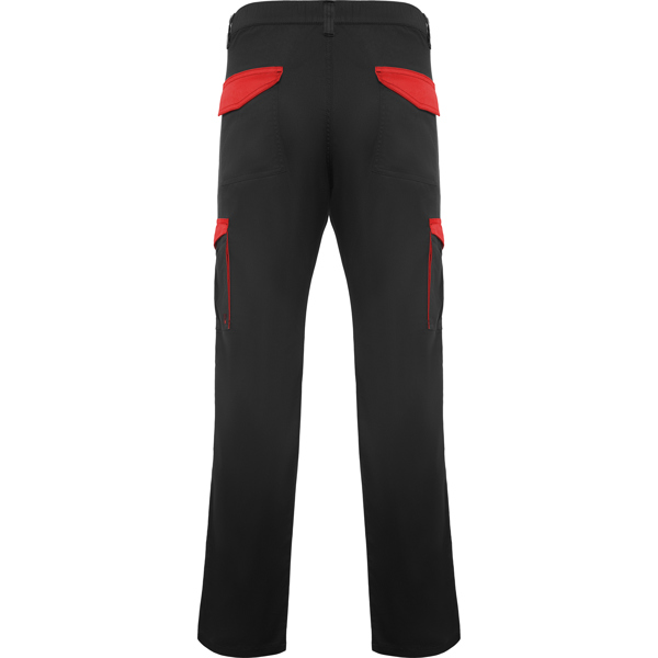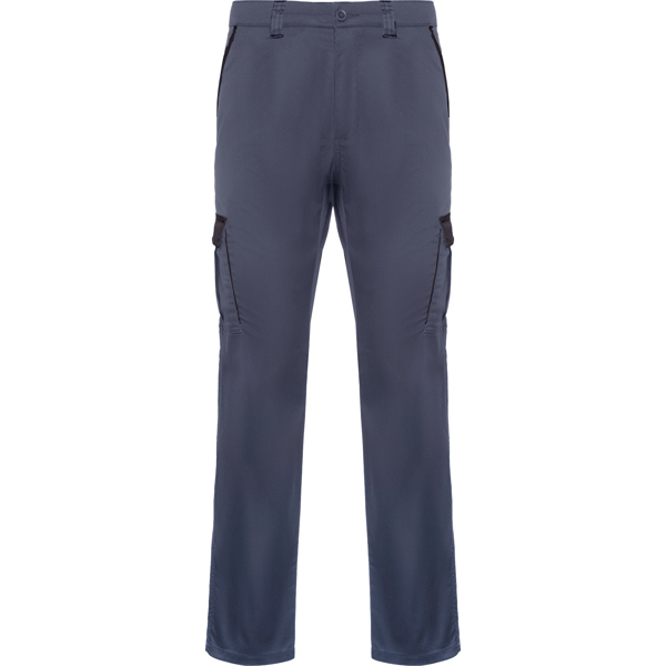 Pantalón largo multibolsillos.· Dos pinzas bajo las dos trabillas delanteras.· Dos bolsillos frontales a la cadera con vivo del mismo tejido a contraste.· Dos bolsillos plaqué traseros con tapetas a contraste.· Dos bolsillos cargo con tapeta y cierre de velcro a contraste.· Etiquetado Roly WRK exterior.