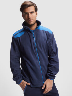 Micropolar con media cremallera en cuello y protector de barbilla. Puños con ribete elástico a tono.