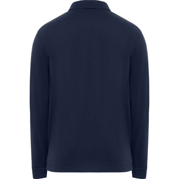Polo de manga larga punto liso ignífugo. · Cuello y puños en rib 1×1 antiestático e ignífugo. · Tapeta con tres botones cubiertos. · Cubrecosturas en el cuello del tejido principal. · Aperturas laterales. · Símbolos ignífugos impresos en la parte inferior derecha. · Ciclos de lavado: x5