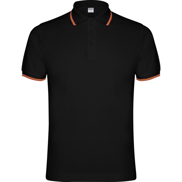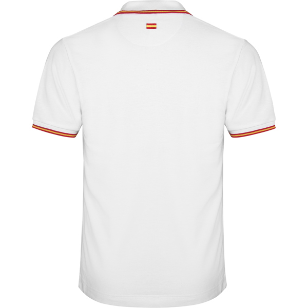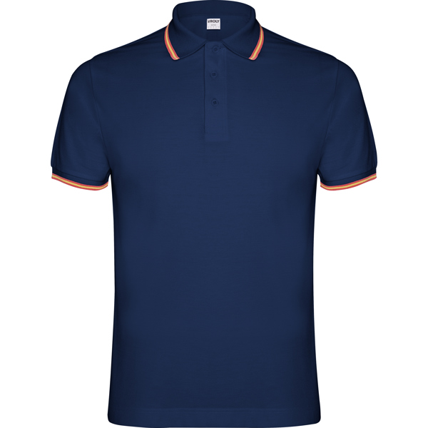 Polo de manga corta con tratamiento antipilling. Punto piqué. Cuello y mangas tejidos 1×1 a contraste de color. Tapeta de 3 botones. Cubrecosturas en cuello del mismo tejido y media luna interior. Detalle bandera bordada en la espalda. Bolsillo opcional. Admite lavado a 60º.