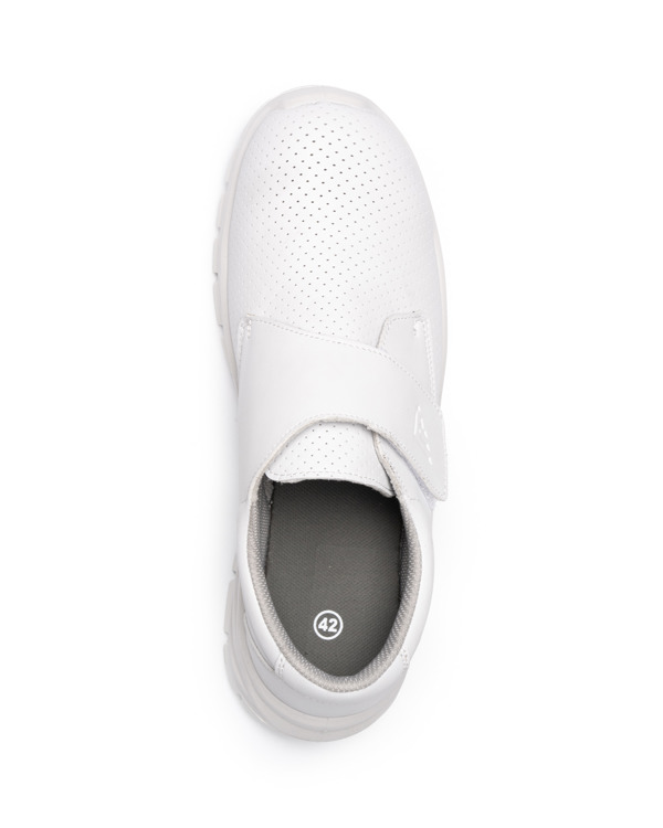 Calzado trabajo.· Puntera: sin seguridad.· Plantilla: Syntehetic · Suela: Poliuretano doble densidad · Cierre: Velcro· Corte textil: White Microfiber· Forro: White Polyester Non Woven Fabric