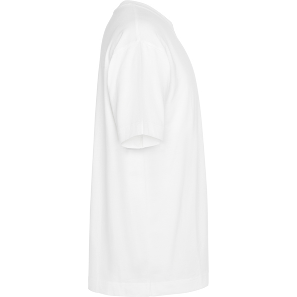 Camiseta gruesa de manga corta oversize. Cuello redondo en canalé 2×1 ancho. Cubrecosturas en cuello del mismo tejido. Doble costura ancha en bajo y mangas.