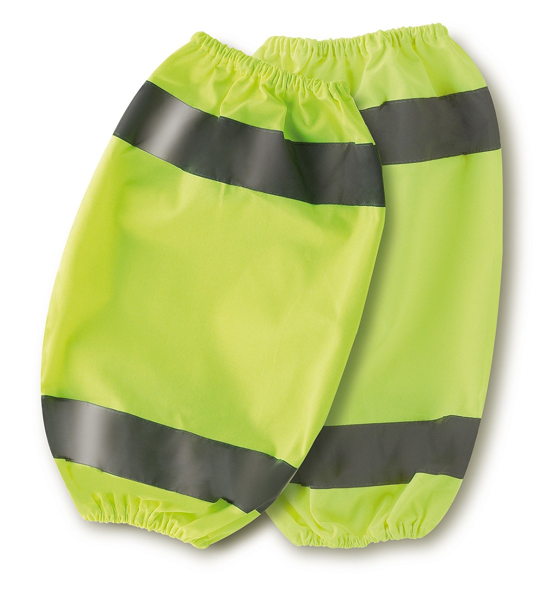 Características: Polainas para señalizar visualmente al usuario en situaciones de peligro de baja visibilidad. Fabricadas en poliéster, con tejido amarillo fluorescente, bandas retrorreflectantes. y elásticos que permiten ser adaptadas y fijadas encima del pantalón del usuario.