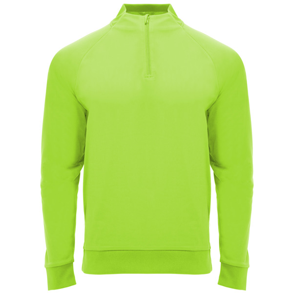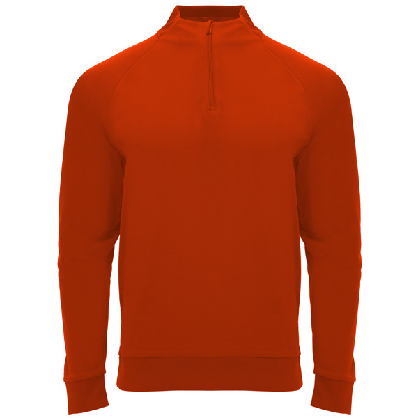 Chaqueta deportiva manga ranglan media cremallera. Tejido perchado. Pieza trasera en el cuello y puños de canalé 1×1. Combinable con pantalón NEAPOLIS 0521.